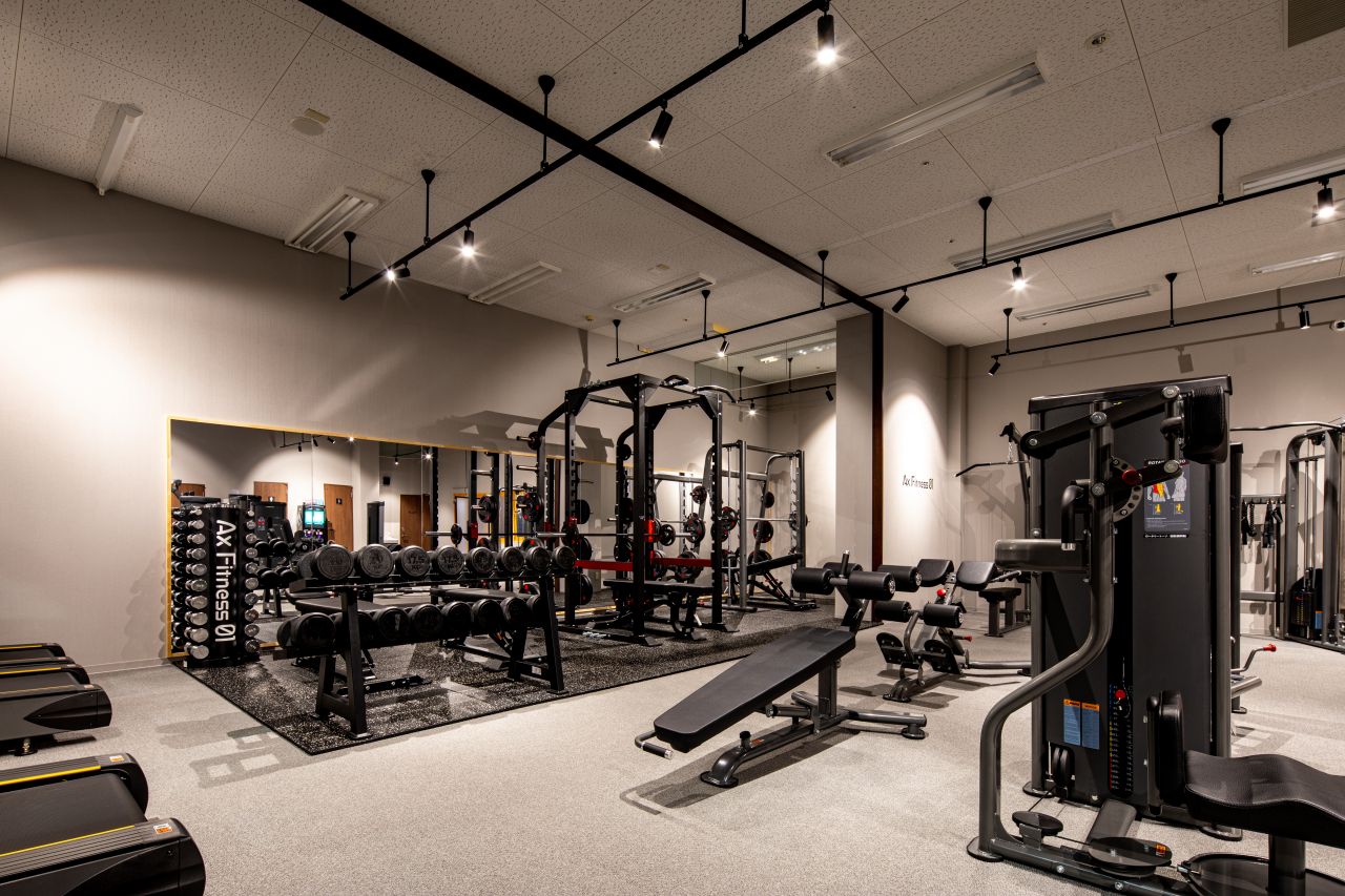 【トレッドミル】×4台・【リカンベントバイク】×2台・【アブダクタ―/アダクター】×1台・【アジャスタブルプーリー デュアル】×1台・【レッグカール/エクステンション】×1台・【レッグプレス】×1台・【ペックフライ】×1台・【ラットプルダウン/ロー・ロー】×1台・【ロータリートーソ】×1台・【チェストプレス】×1台・【アブドミナルベンチ】×1台・【バックエクステンションベンチ】×1台・【スミスマシン】×1台・【パワーラック】×1台・【アジャスタブルベンチ】×4台